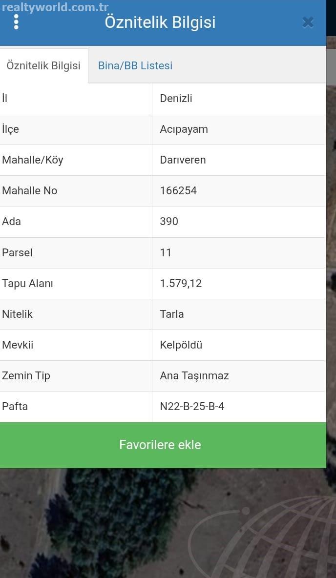• Tapu Alanı: 1579m²