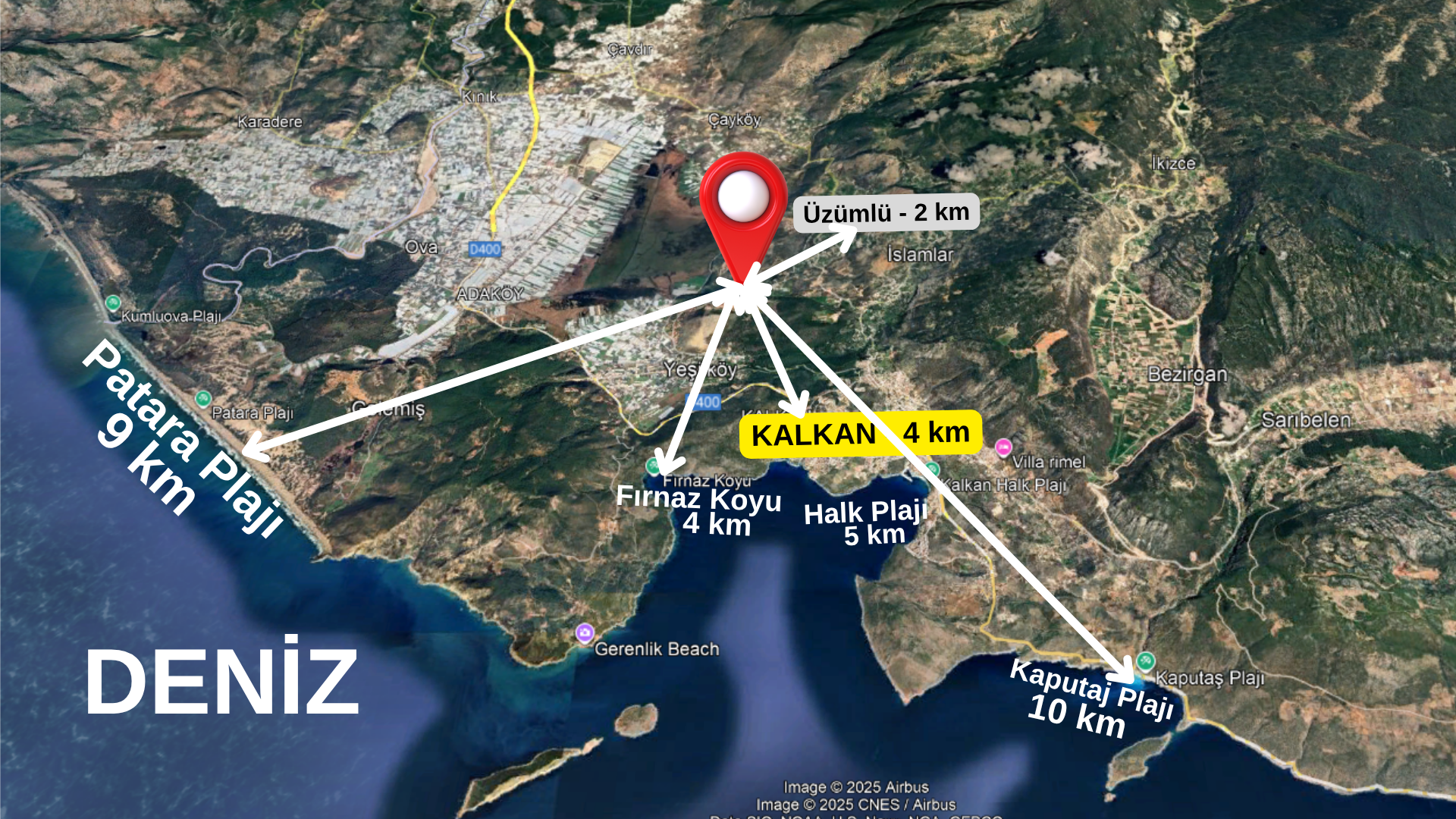 - Kalkan: 4 km