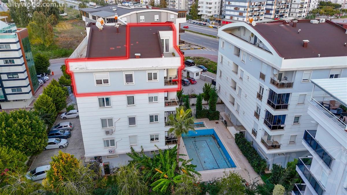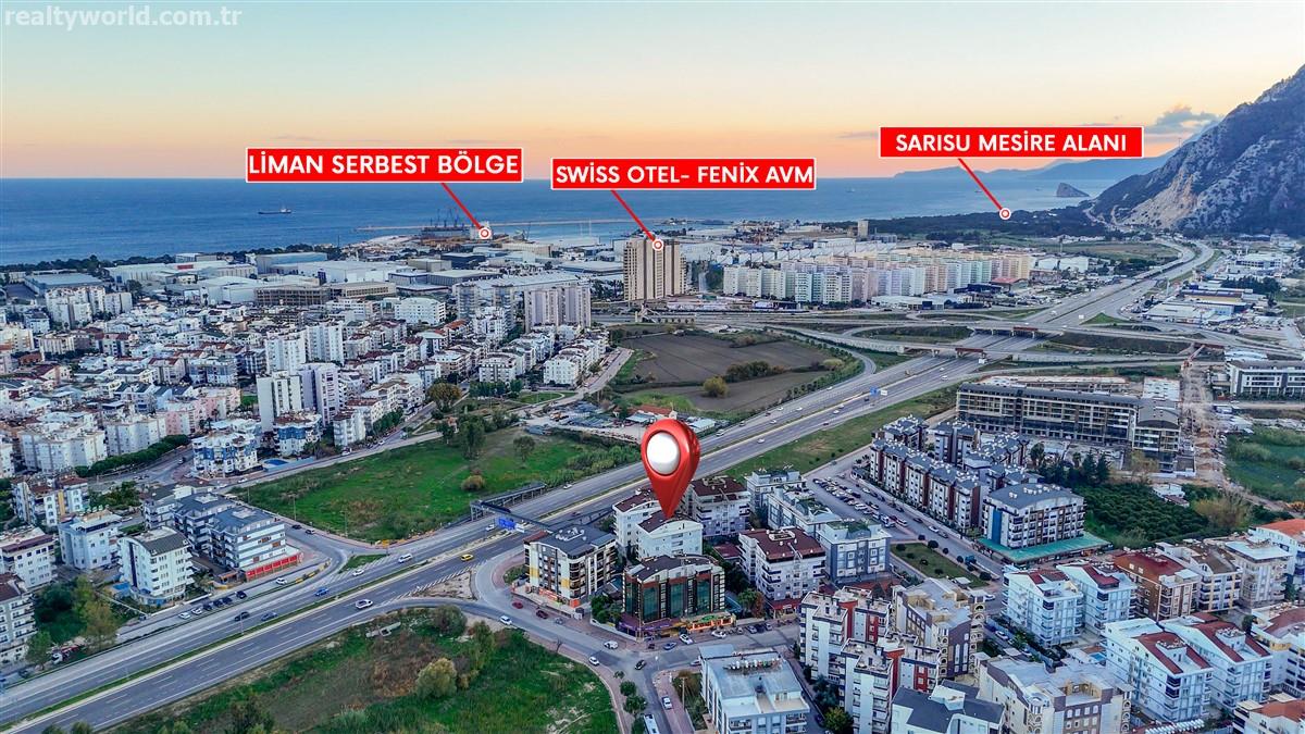 Daire Konyaaltı Hurma Mahallesinde iki bloklu site içerisinde bulunmaktadır. Site içerisinde; açık otopark ve açık yüzme havuzu bulunmaktadır. Konum itibariyle market, toplu taşıma, pazar vb. tüm sosyal tesislere yürüme mesafesinde bulunan daire 140m2 net kullanım alanına sahiptir.