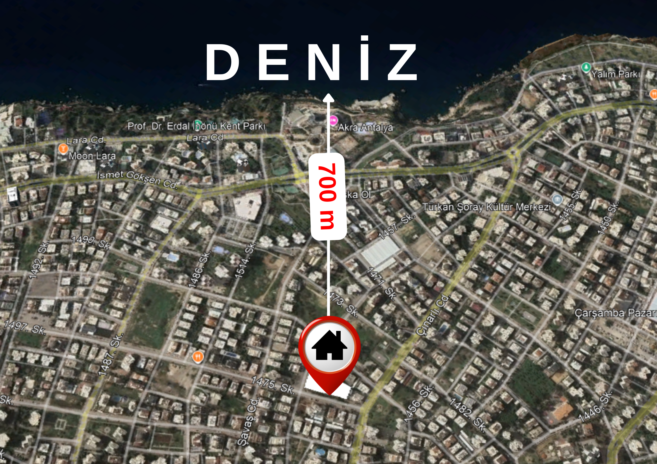 Çok merkezi lokasyon; denize, toplu ulaşıma, çarşı, pazar vb. yürüyüş mesafesinde:)