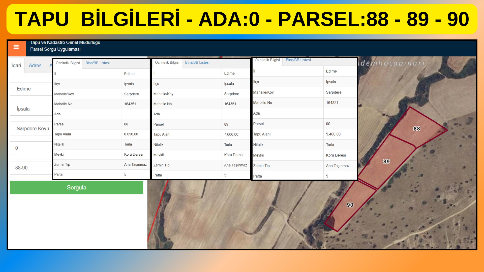 Yan yana bitişik 3 ayrı tapu: 88-89-90